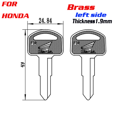/ F-217 Brass Thickness 1.9mm Honda door key Blank RIGHT side