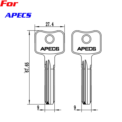 K-133 Length 27.9 mm Thickness 2.2mm door key blanks LEFT side