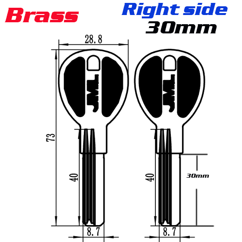 K-033 Brass long key blanks WANJIN Suppliers Right side