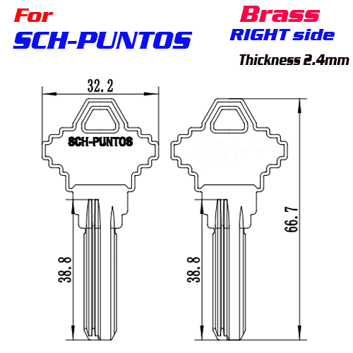 K-287 Brass Thickness 2.4mm SCH-PUNTOS key Blanks Right side