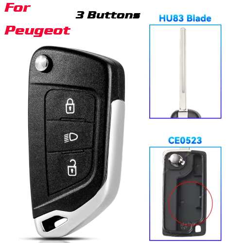 CKS-446 Modified Car Key Case For Peugeot 3 Buttons HU83 blade