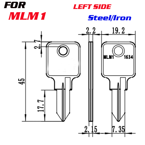 / J-018 Steel Iron Thickness 2.15mm MLM1 House key Blanks left