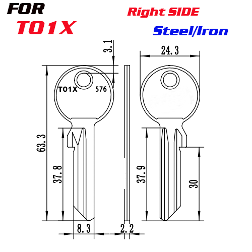 / J-025 Steel Iron Thickness 2.2 mm TO1X House key Blanks Right