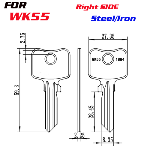 / J-026 Steel Iron Thickness 2.25 mm WK55 House key Blanks Right
