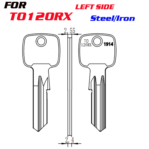 J-027 Steel Iron Thickness 2.55mm TO120RX House key Blanks LEFT