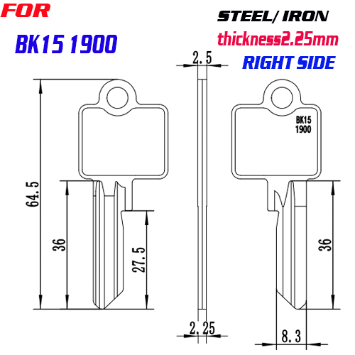 / J-032 Steel Iron key blanks BK151900 Thickness 2.25mm