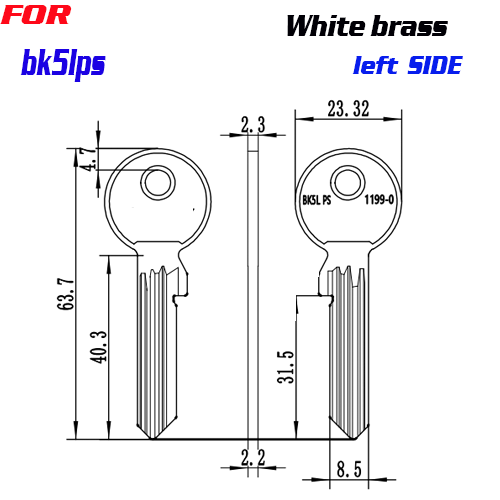 / J-039 White Brass key blanks BK5LPS left SIDE