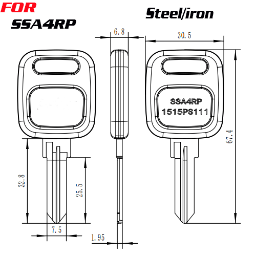 / J-069 Steel/Iron SSA4RP House key Blanks Right side