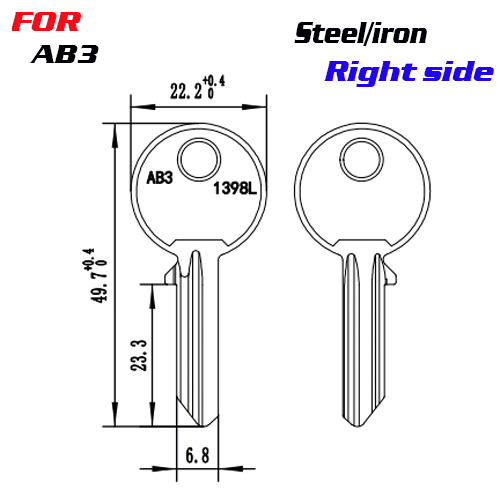 J-033 Steel Iron key blanks AB52 Thickness 1.9MM RIGHT SIDE