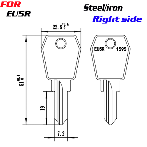 / J-078 Steel /iron EU5R KEY BLANKS Right Side
