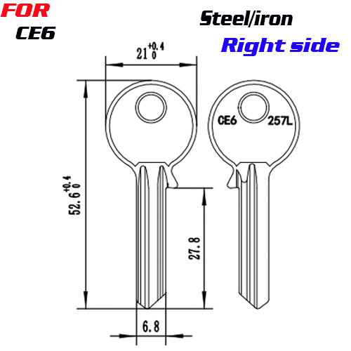 J-079 Steel /iron CE6 KEY BLANKS Right Side
