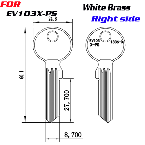 J-086 White Brass EV103X-PS KEY BLANKS Right Side