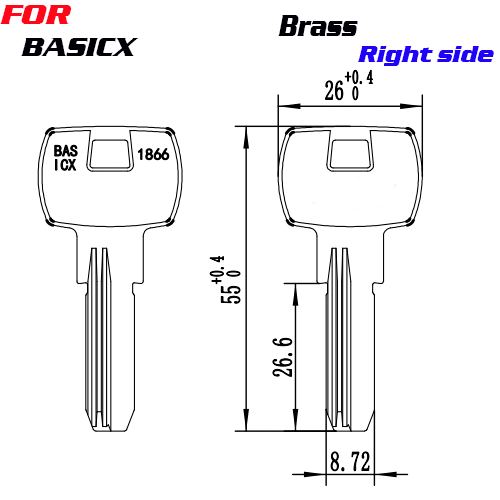 / J-101 Brass BASICX KEY BLANKS Right SIDE