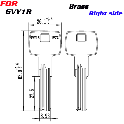/ J-102 Brass GVY1R KEY BLANKS Right SIDE