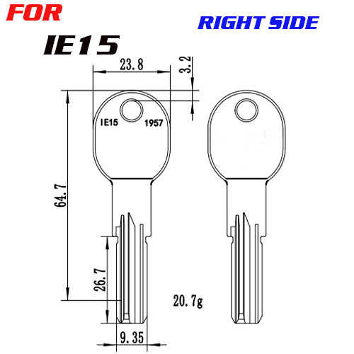 / J-107 Brass IE15 House key blanks Right side