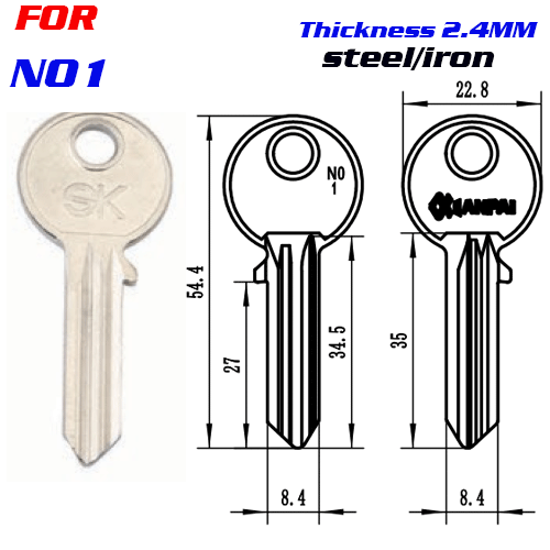 / F-040 Steel Thickness 2.4mm NO.1 door key Blanks Wholesale