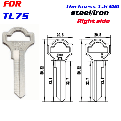 / F-049 Steel Thickness 1.6 mm TL7S door key Blanks Right SIDE