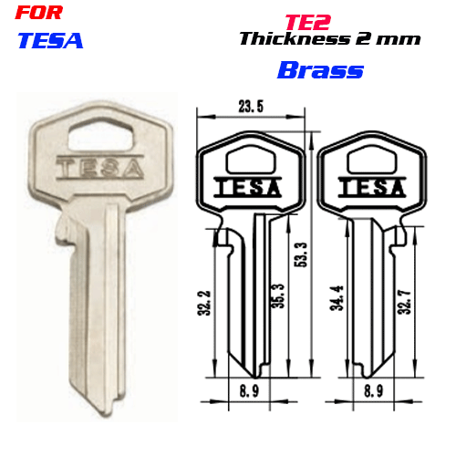 / F-065 BRASS Thickness 2.0 mm TE2 door key Blanks