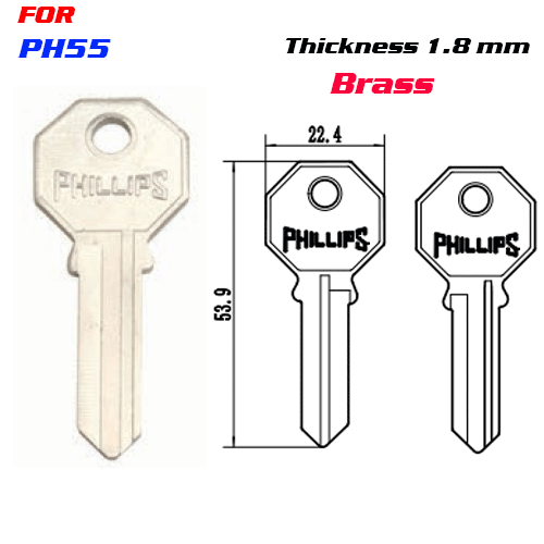 / F-075 Brass Thickness 1.8 mm PH55 door key Blanks
