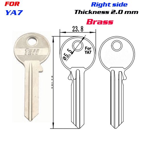 / F-077 Brass Thickness 2.0mm YA7 door key Blanks Right side