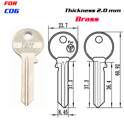 F-078 Brass Thickness 2.0mm C06 door key Blanks
