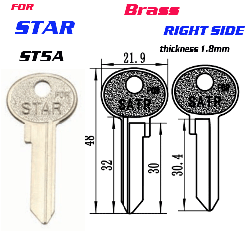 F-107 Brass Thickness 1.8mm STAR ST5A door key Blank RIGHT side