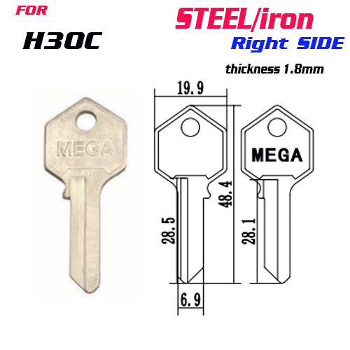 F-128 IRON Thickness 1.8mm H30C door key Blank Right SIDE