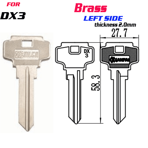 / F-135 Brass Thickness 2mm DX3 door key Blank LEFT SIDE