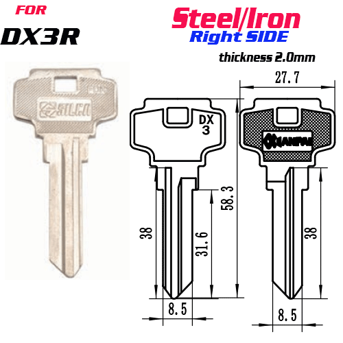 / F-137 Steel Thickness 2mm DX3R door key Blank Right SIDE