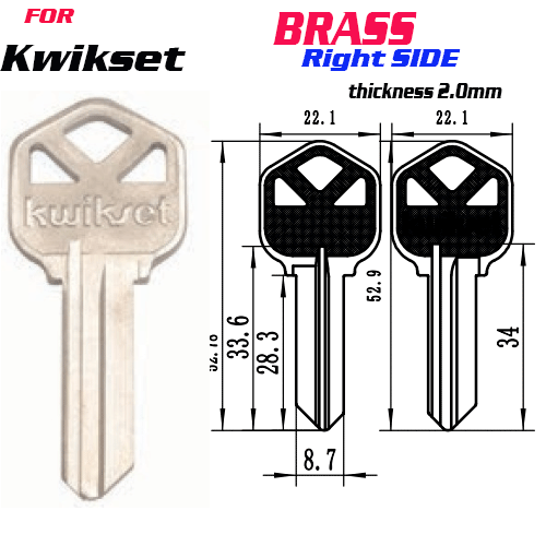 / F-139 Brass Thickness 2mm Kwikset door key Blank Right SIDE