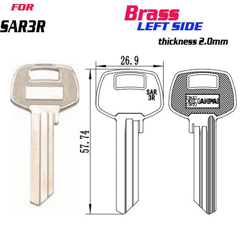 / F-143 Brass Thickness 2mm SAR3R door key Blank left SIDE