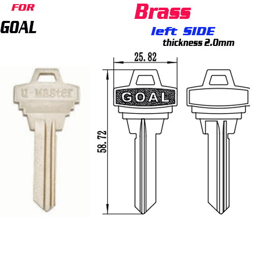F-149 Brass Thickness 2.0mm GOAL door key Blank LEFT SIDE