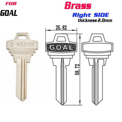 / F-150 Brass Thickness 2.0mm GOAL door key Blank Right SIDE