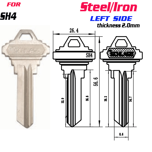 F-152 Steel Thickness 2.0mm SH4 door key Blank left SIDE