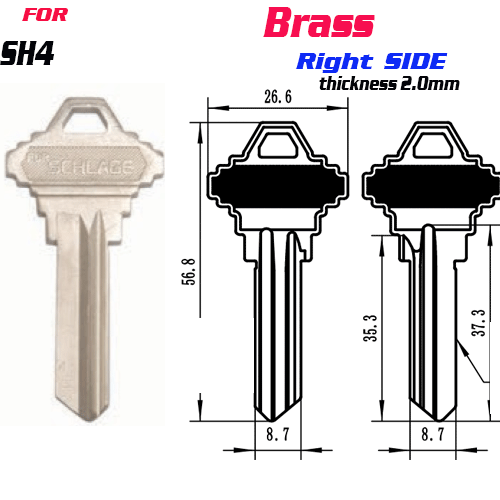 / F-154 Brass Thickness 2.0mm SH4 door key Blank Right SIDE