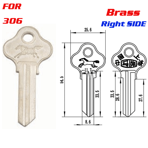 / F-168 Brass Thickness 2.0mm 306 door key Blank Right SIDE