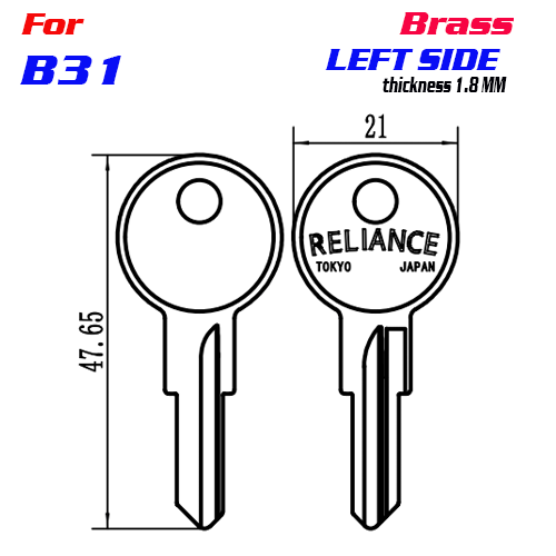 / F-188 Brass Thickness 1.8 mm B13 door key Blank LEFT side