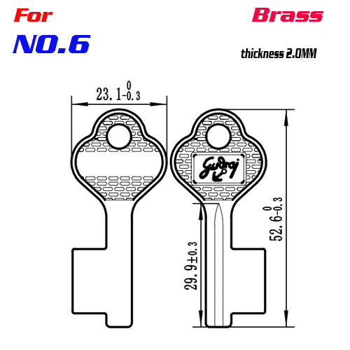 F-189 Brass Thickness 2mm NO.6 door key Blank