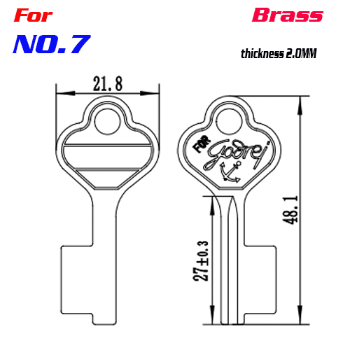 F-190 Brass Thickness 2mm NO.7 door key Blank