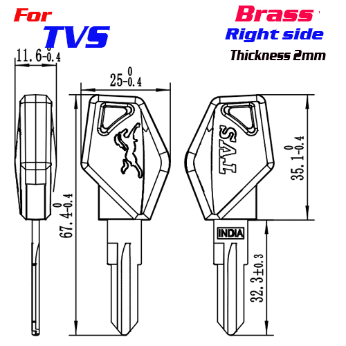 F-191 Brass Thickness 2mm TVS door key Blank Right side