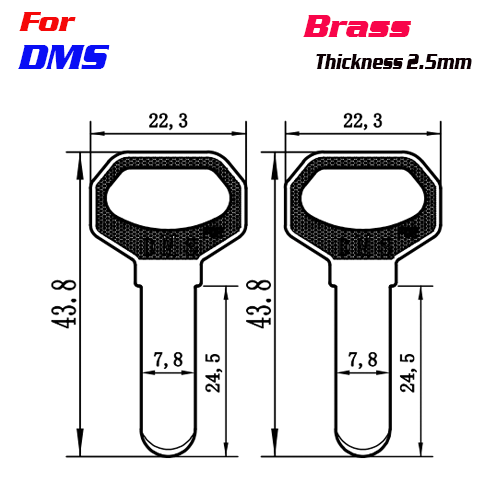 / F-203 Brass Thickness 2.5 mm DMS door key Blank