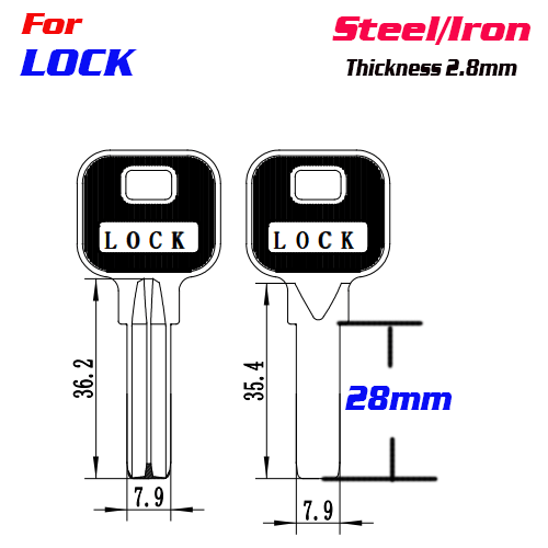 / F-204 Steel Thickness 2.8 mm lock door key Blank