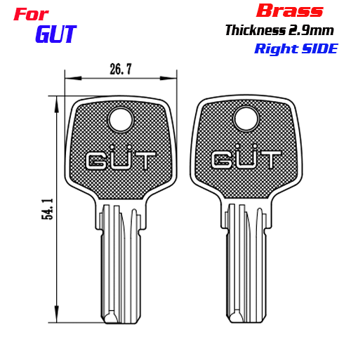 / F-223 Brass Thickness 2.9mm GUT door key blanks Right side