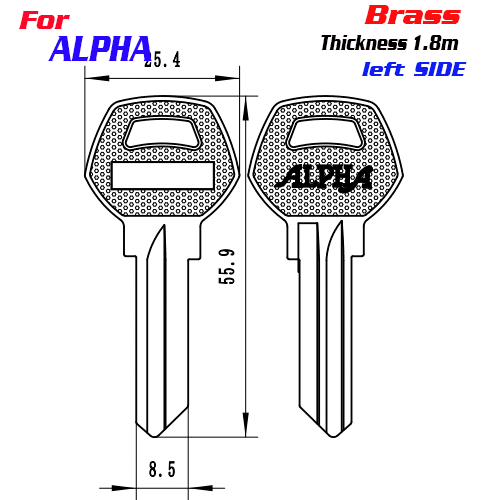 F-225 Brass Thickness 1.8mm ALPHA door key blanks LEFT side