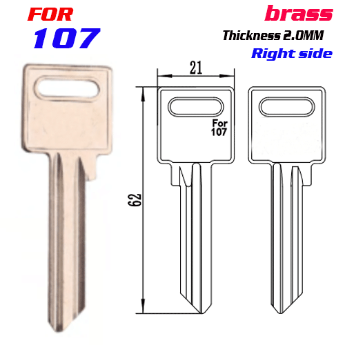 F-232 Brass Thickness 2.0mm 107 door key blanks Right side