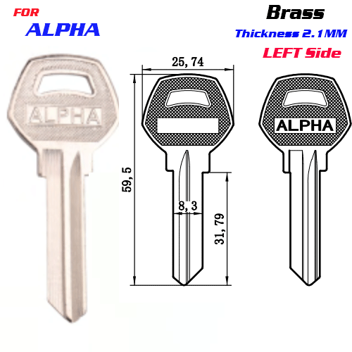 / F-234 Brass Thickness 2.1mm ALPHA door key blanks LEFT side