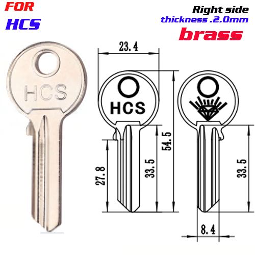 / F-242 Brass Thickness 2.0mm HCS door key blanks Right side