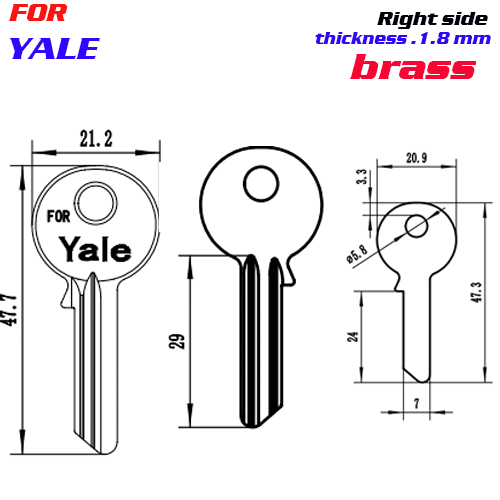 / F-246 Brass Thickness 1.8mm YALE door key blanks Right side