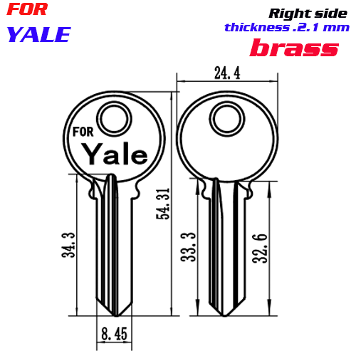 / F-247 Brass Thickness 2.1mm YALE door key blanks Right side