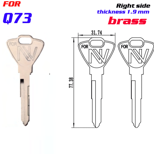 / F-249 Brass Thickness 1.9mm Q73 door key blanks Right side